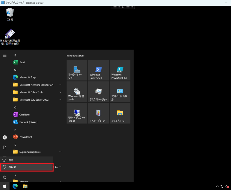 仮想デスクトップの再起動の操作手順は以下の通りです。
